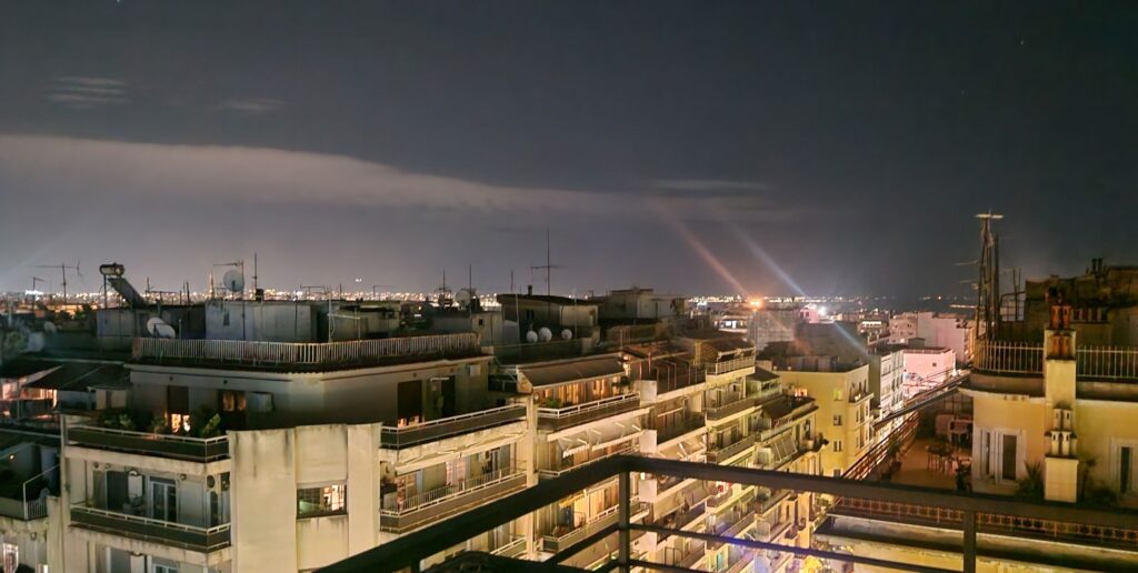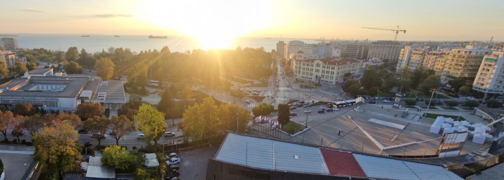 Vom Aussichtsbereich des YOUTH HOSTELS habe ich von der 7. Etage aus einen wundervollen Blick über den von mir heute gestreiften Abschnitt der Bucht von Thessaloniki erhalten: