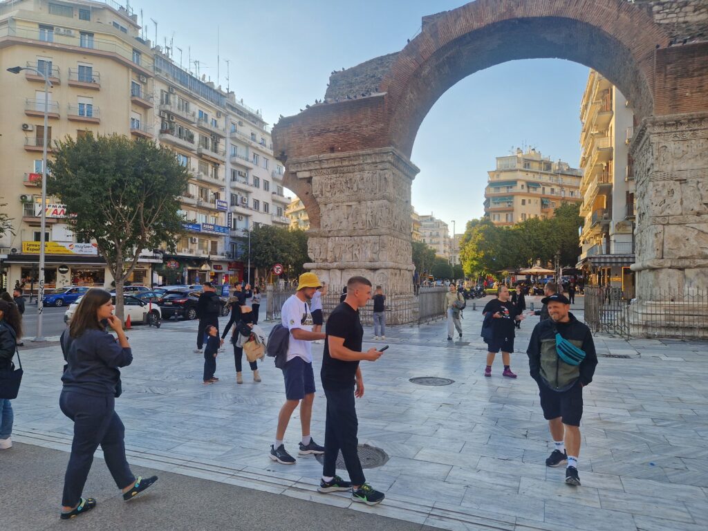 Mit Hilfe von Gästen einer Kaffebar fand ich das knapp einen Kilometer entfernte STAY HOME YOUTH HOSTEL. Ich war überrascht von dem Straßenlärm und von der enormenVerkehrsmenge. Der Unterschied zum vorhergehenden, eher ländlich geprägten, Leben war gewaltig. Mir war vorher gar nicht bewußt, dass im Großraum Thessaloniki 1,3 Mio Menschen leben. Obwohl die Hostelmitarbeiter darauf hinwiesen, dass die Zimmer erst ab 15 Uhr genutzt werden können, suchte ich meine neue Heimstätte auf, hinterlegte mein Gepäck und begab mich auf die Suche nach dem Geschäft von Vangelis. Seine Gattin Katerina hatte mir vorher per WhattsApp seine Ladenadresse in der Askitou 11 mitgeteilt. Er befand sich in einem historischen Marktkomplex, man könnte sagen in einem Hinterhof. Der Straßenname war auch in unmittelbarer Nähe Einheimischen nicht bekannt, vielleicht wird für diesen Bereich ein anderer Begriff verwendet oder es lag schlicht an meiner Aussprache. Einmal wurde ich sogar irrtümlicherweise zu einem (anderen) Vangelis gebracht. Er arbeitete in einer, in der dritten Etage befindlichen, Werkstatt. Obwohl die Hilfeversuche zunächst erfolglos waren, gegen die Hilfsbereitschaft von vielen kann ich dennoch nichts sagen.